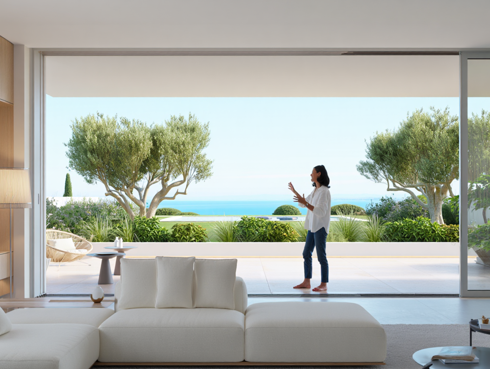 « Dès les premiers beaux jours, j’ouvre ma baie complètement », explique Marie Torres, propriétaire à La Garde. « Mon salon devient un salon de jardin géant. Les enfants passent de la maison à la piscine sans contrainte, c’est un bonheur ! »