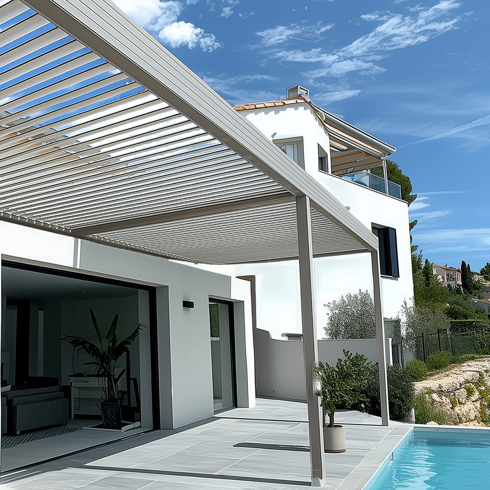 Profitez de votre jardin toute l’année grâce à nos pergolas bioclimatiques sur-mesure pour une atmosphère unique et personnalisée.